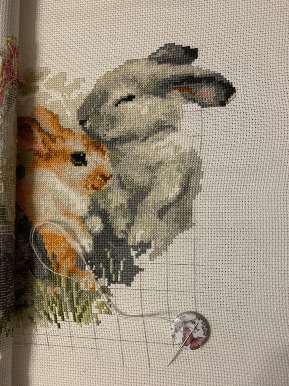 А вышивка твоя хорошо очень прибавилась, зайка прям почти готов )