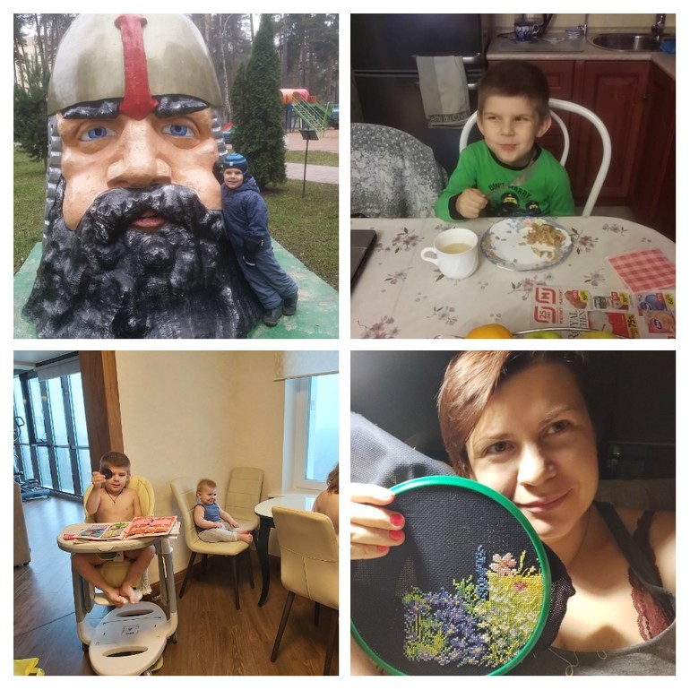 Я сделала кучу дел, вышивала вечерами, в пятницу мы виталика после сада отвезли к бабушке с ночевкой, а вика наслаждалась моим вниманием, много читали, рисовали, общались. Папу я отпустила на дачу с одной ночевкой, он пригласил 2 старых товарищей, и поскольку до этого 3 выходных подряд развлекал меня по выходным, то я отпустила его тоже развеяться в мужской компании.