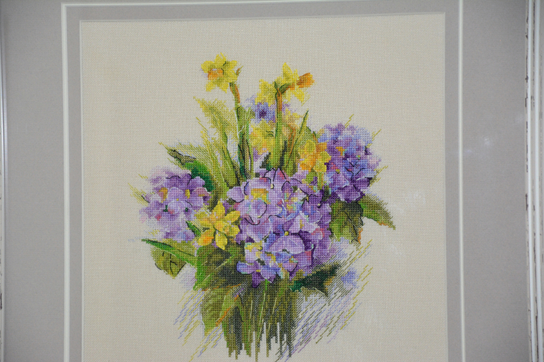 Вышита на равномерке Мурано 32, цвет платина.