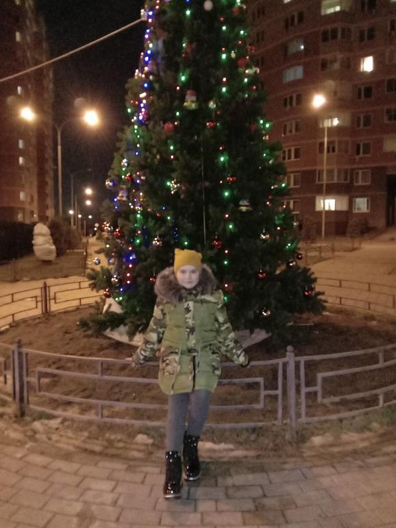 Кстати, у Кати в Видном, во дворе, стоит красивая елка: