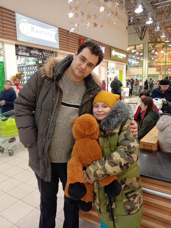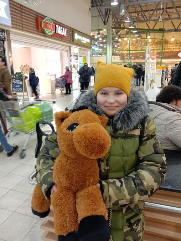 Вооот... а потом у нас был практически "семейный выезд" с Костиком и Лизой, поехали с ним покупать елку, продукты, потом он, гад, купил Лизе огромного конягу: