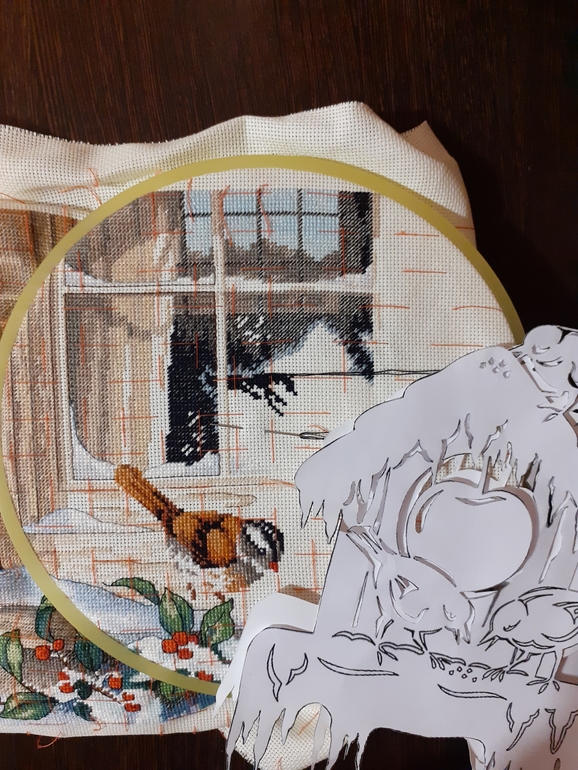 А это мы начали окна украшать ,вчера до 5 утра рисовала и вырезала🤦♀️. Надо еще с сыном поделку в садик доделать. Мы еще болеем ,к врачу завтра пойдем ,но у детей кашель остался и не хороший какой то ,у дочери в пятницу вечером обнаружился к уже имеющемуся кашлю синусит и отит ,ЛОР назначил антибиотики . Поэтому настроения у меня нет ,прямо клещами его из себя доставать приходится . И в результате ,вышивала только около часика один раз . Было