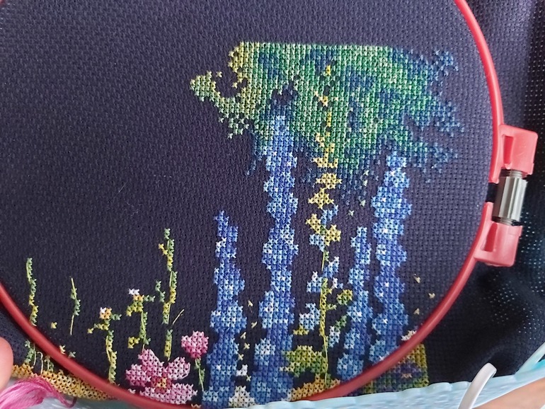 Вышивка очень хорошо продвинулась! И мышонок классный такой!