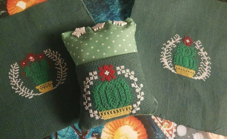 Ещё вышила Новогодние кактусы от Совиного леса и из одного сшила игольницу-чехол для ножниц