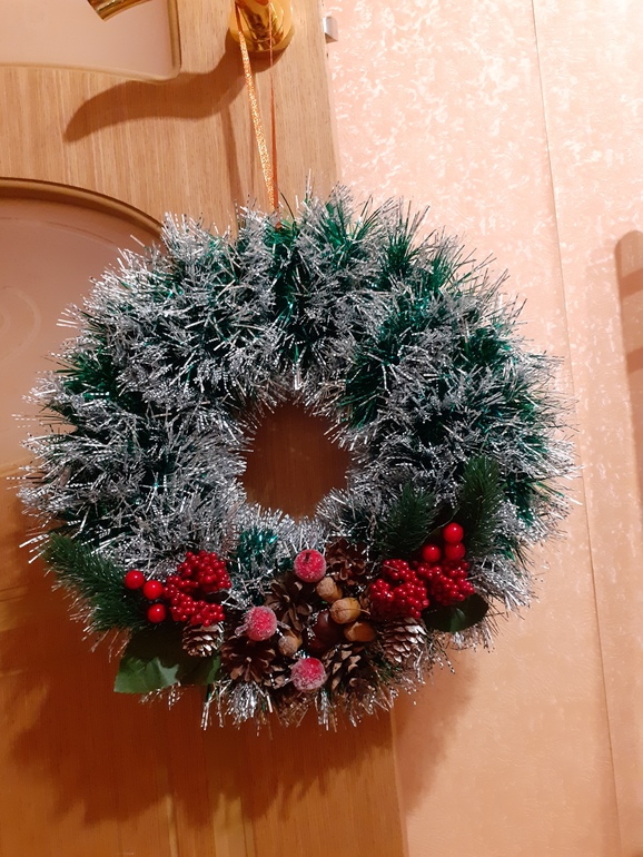 А поделки у тебя волшебные! Такая красота! Что венок, что украшения на окна ) Какая ты молодец!