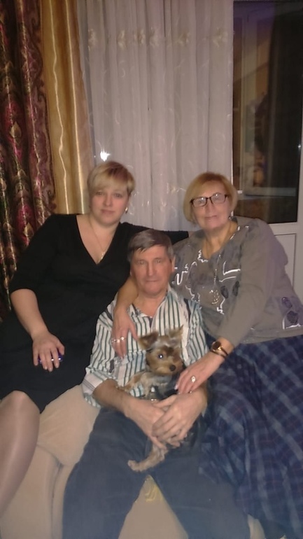В четверг у моего папочки был День рождения - 65 лет. Мы с мужем поехали его поздравить. Моя двоюродная сестра спекла шикарный вкусный торт, я и мама купили пироги. В общем вкусненько нам было) Мамин фотоаппарат дрянь, но тем ни менее, я с папой, тетей и Васей)