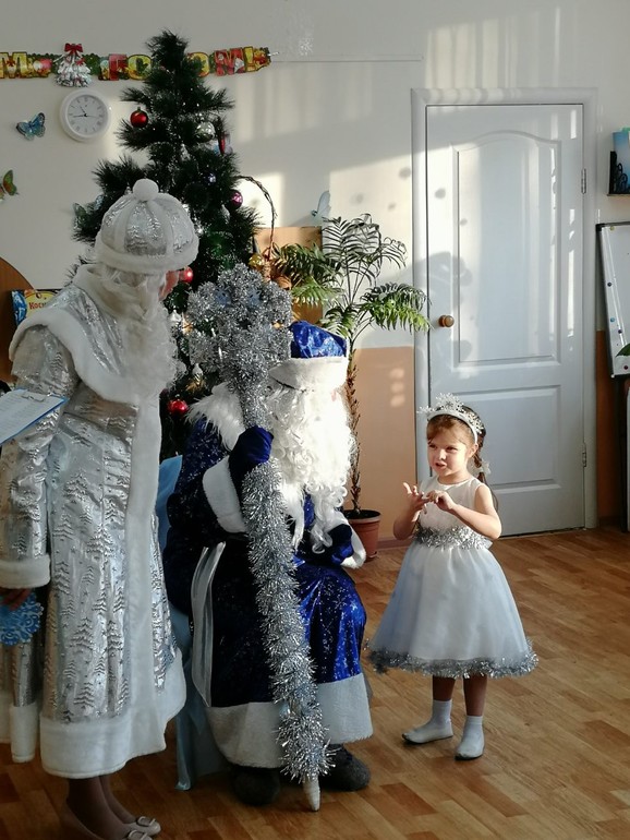 У младшей дочки прошел утренник, правда из-за карантина нас, родителей, опять не пустили. Фотки от воспитателя, мы - снежинка:)