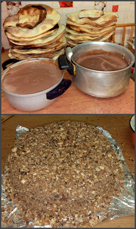 Ну, строго говоря, это не один, а два торта, наверху на фото. Просто второй торт не сфоткала. Пекла их и для дома, и для свекров - где мы собирались встречать Новый год)))