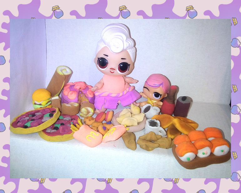 И Сашины рукоделки покажу, миниатюрная еда из лёгкого пластелина