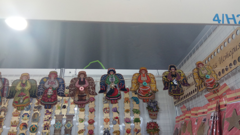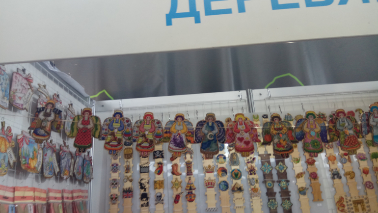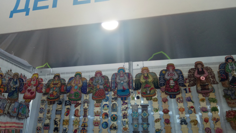 Рядом Деревяшка. Очень много всего украинского на деревянных заготовках. Тут тоже толпа) Поэтому сначала я смогла запечатлеть только чудесных ангелочков на верху