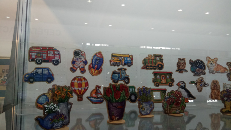 Первым делом я рванула в "Я вышиваю", где тестируют и продают станки амур, много магнитиков, равномерки...но я бежала за плакатом с заданиями, боялась, что мне не хватит) Теперь буду развлекаться!