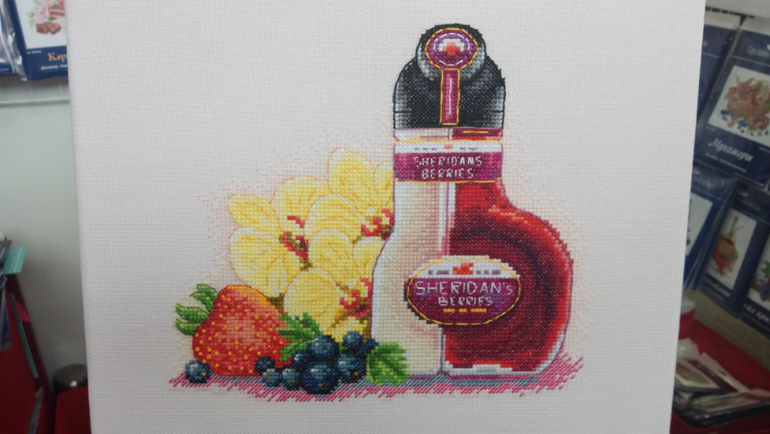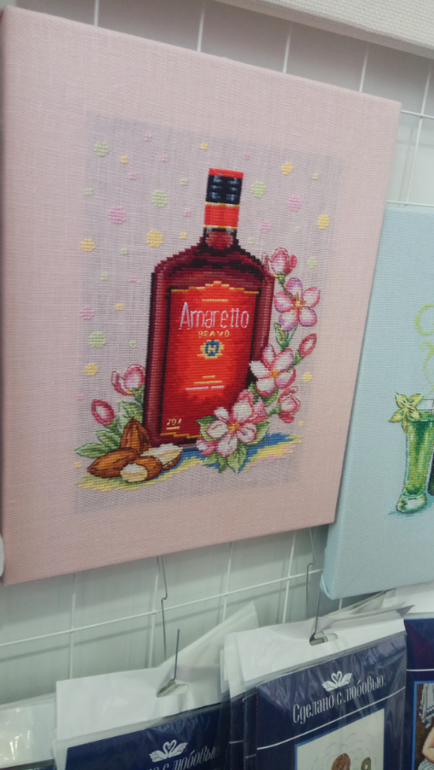 Сочные вышивки от "Сделано с любовью" Здесь я запала на алкоголь. Букеты отличные. Супер мухоморы в корзине. Еда, как живая)