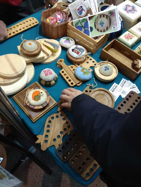 В этот раз многие производители поменяли свои насиженными места. Раньше первой около гардероба была улочка Панны, а теперь в основном тут остались авторы-дизайнеры, аксессуары для вышивки и тп