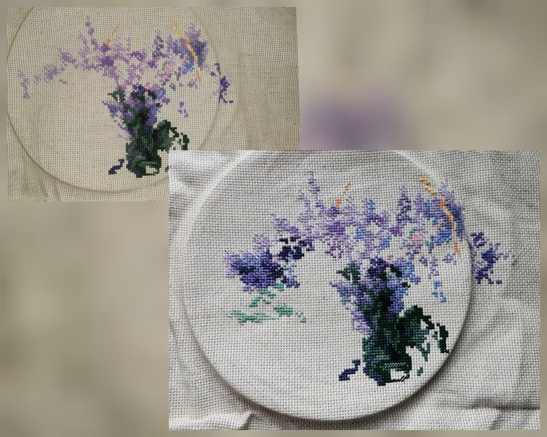 пока очень нравится. И даже гобелен. Не паришься насчет идеальной изнанки и отчасти преломление нити получается и ровнее стежки. Вышиваю с приключениями. То иголка родная упала под кресло, вышивала другими, потоньше, ими сложнее, то кожа на руках сохнет и нитки зацепляются. Но вчера достала иголку и сделала кокосовое масло