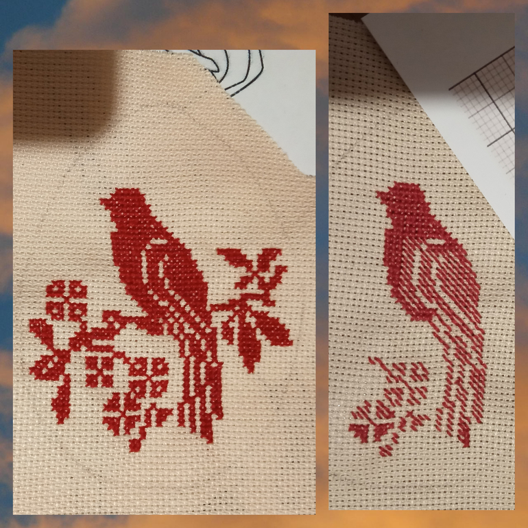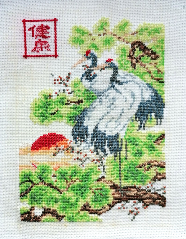 Немного расстроилась, потому что похоже красные нитки немного полиняли((( и маркер как-то остался желтоватыми местами... Ну да ладно! Иероглиф вообще было нереально на такой мелкой канве шить - там сплошные полукрестики!