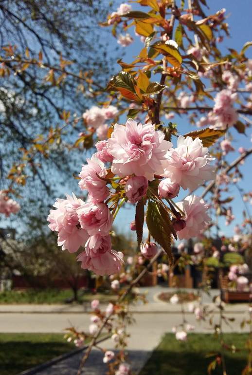 У нас в одном из парков много деревьев сакуры. Был "Год Японии в Украине" и в рамках этого высадили сакуры