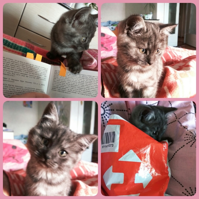 Киса хорошо подросла, и да, ест много))) На голову не ляжет, она очень игривая, на месте не усидит)))