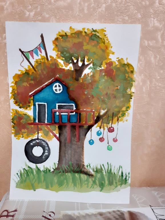 Я тоже рисовала домик на дереве в ночи и так устала ,что наутро никак не могу вспомнить по какому мастерклассу я это делала 🙈