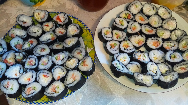 Муж уехал к родителям, а мы с мальчишками развлекаемся, чем можем. Готовим, например. Вот суши готовили