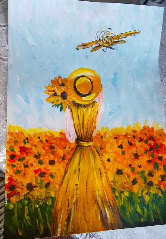 Девушку в подсолнухах. Кукурузник от себя прибавила, на мастер-классе его не было