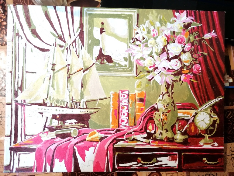 Красивая картина получилась ) . Мне тоже давно уже хочется попробовать картину по номерам . У меня сестра ими увлекается,а я пока вдохновляюсь ))