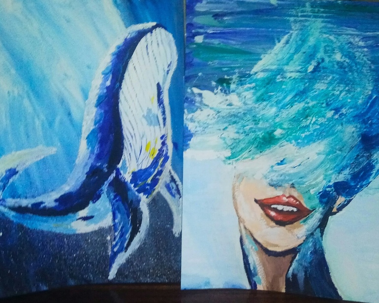 А ещё рисовала по мастер-классам. К киту нарисовала девушку-волну.