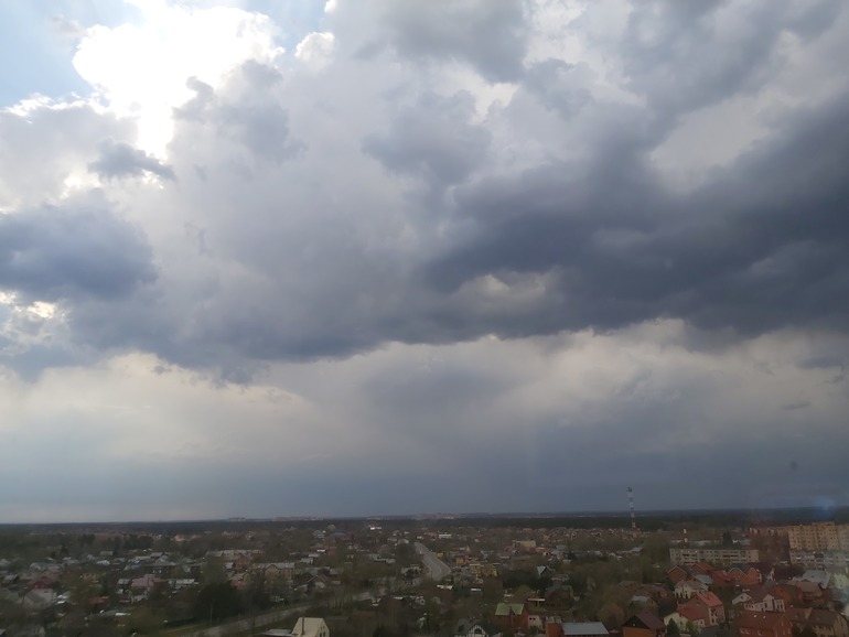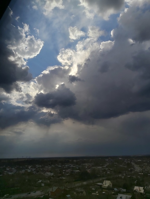 И напоследок совершенно разные видончики с нашего зала/балкончика. Теперь еще и сын научился делать фотки на телефоне и как видит интересное облако, бежит фотографировать