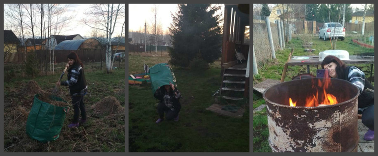 Сделали очень много: посадили кукурузу, горошек, кусты: смородину, крыжовник, малину, боярышник; еще - цветы и газон, надеюсь, подправили. Пожгли сухую траву и програбили участок. А, еще баллон газовый скатались, заправили, во. На выпиливание время не осталось - но я послезавтра еду, ох, и попилююююю...