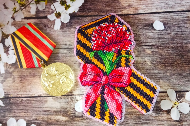 Теперь по вышивке. К 9 мая вышила брошь по бесплатной авторской схеме