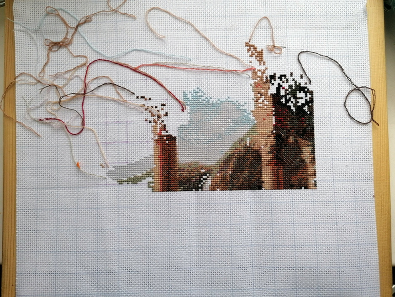 Вышивка с нуля не сильно подросла.я стараюсь каждый день в дневной сон детей немного вышивать. На прошлой неделе три дня выпали из привычного распорядка. Поэтому не слишком-то хорошее продвижение. Что будет и сколько вышилось.