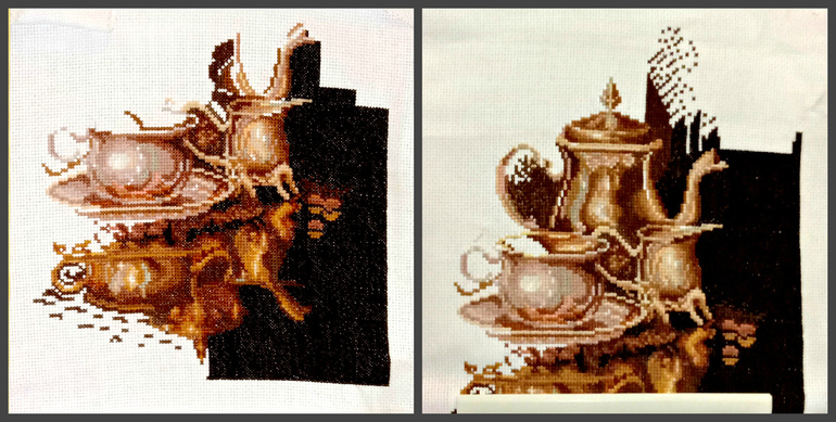 ) может из-за того что взяла коричневую канву? там у неё должна быть белая. Надо отшивы глянуть