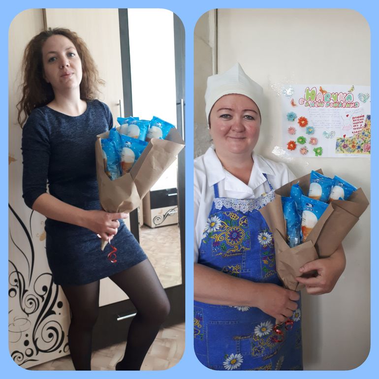 Тут полукрест весь фон, поэтому думала быстро вышью. А человек крестом, но блин итки шерстяные,толстые, мешанина из одиночек, вот меня и тормозит. Да, букет из мороженого, она очень любит его, всем понравился подарок)