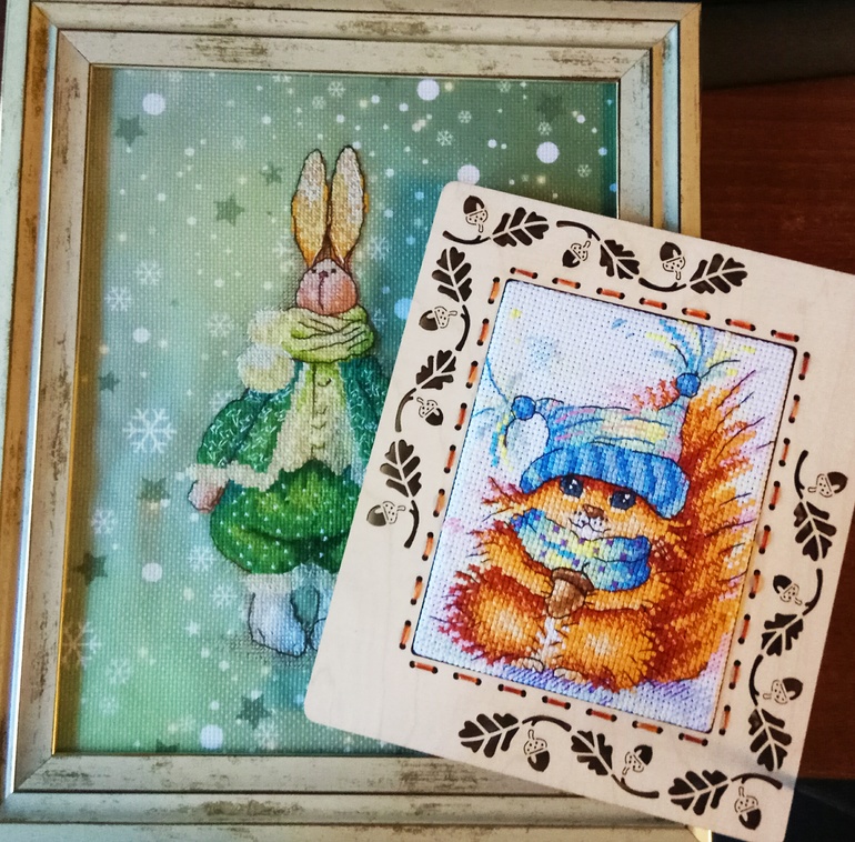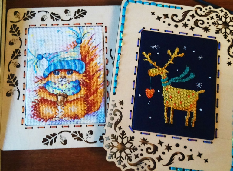 Очень продуктивная неделя! Оформленные работы прекрасно украсят новогодний интерьер, заяц - мой фаворит:) ,а у белочки и оленя рамочки в наборе шли? уж очень они замечательные!