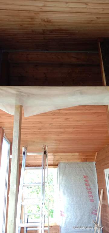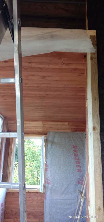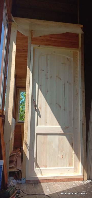 Болтается белое - это изоплен, им утеплитель прокладывают, не обращайте внимания, он позже уйдет под обшивку)) Поставили дверь: