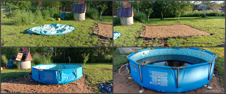 - опять же, с помощью мальчиков по вызову рабочих наконец-то засыпали площадку под бассейн и его поставили-налили!