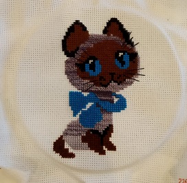 А вот этого котенка по имени Му вышила моя дочка (простите, что мятое, не смогла заставить себя в такую жару включить утюг)