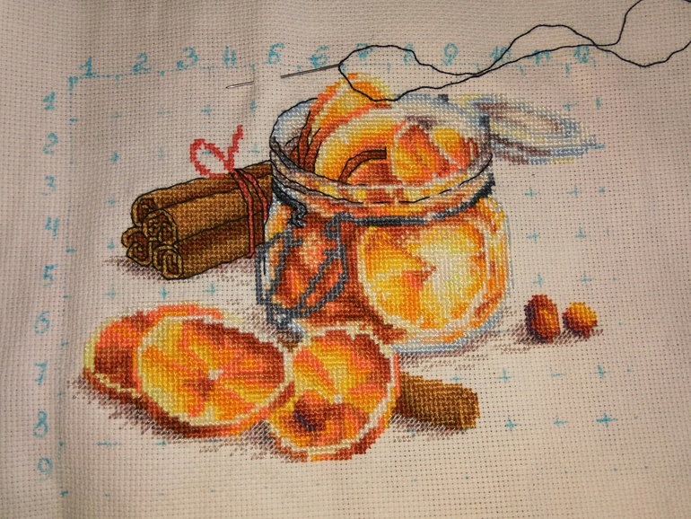 А вышивала я немного из-за отъезда, надо было сделать дома дела, собрать вещи, мужу еды наготовить. Но все же прибавка заметна.
