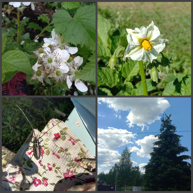 У нас не дача. Мама живет в поселке Максатиха Тверской области, дом не частный, двухэтажка на 18 квартир, но двор огорожен, много зелени, огороды. Поселок тоже не особо большой, на весь всего 5 5-этажек ) Больше всего частного сектора. Я люблю сюда летом приезжать, много зелени, тишина (мамин дом стоит на тихой улице), птички поют, стрижи свили гнездо прямо над лоджией ) Я тут отдыхаю от города ) В другой сезон тут скууука смертная, а летом хорошо ) Вот клубничку собираю, скоро огурчики свои пойдут ) Горох вырастет ) В общем, красота ))