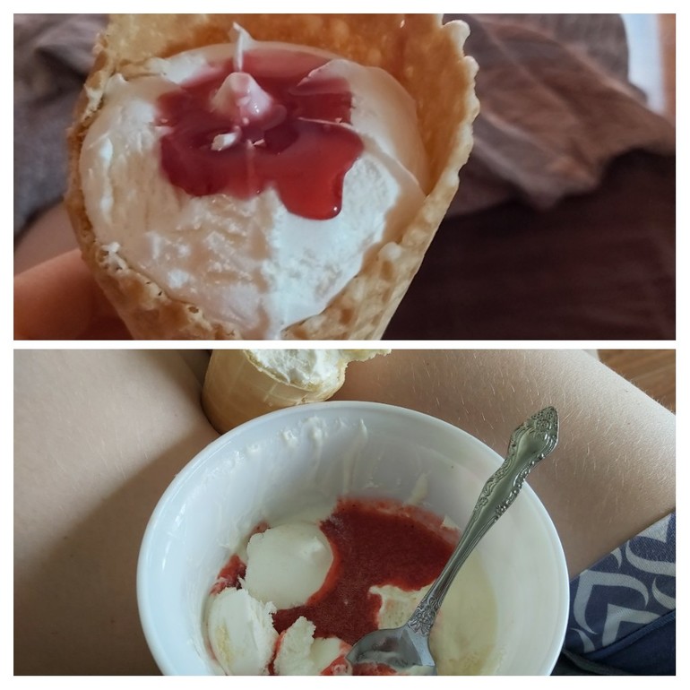 Еще я не писала, что за время карантина апрель-май я похудела на 7 кг. Просто правильное питание и спорт по силам, в 11 ночи. В июне начались прогулки и спорт закончился, потому что я домашние дела с 10 до 11 вечера делаю, тк днем не хватает времени. Но даже без спорта вес назад не набираю и очень довольна, и это при том, что я ем 1-2 мороженого каждый день. Мороженое - мой самый любимый десерт, самый-самый. Причем не со всякими добавками, а просто пломбир, сливочный или шоколадный. С уж клубничным варенькм или свежим желе я сама поливаю )))