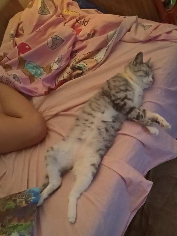 Даже кошка спит исключительно на прохладной простыне с Сашей под вентилятором:)