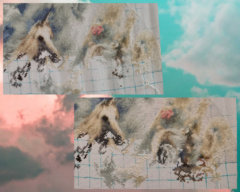 Ого, разница! Отлично вышивка идет, цвета очень красивые, сочные такие.