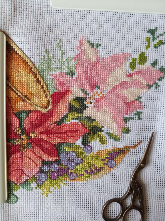 Привет Катрин, Да, очень невеселая становится, в плане видов... Хорошо, что сынок в сад пошел, хоть чуток полегче. Цветы красивые распускаются на вышивке! Желаю успеть, чтобы украсить вашу ёлочку такой красотой!