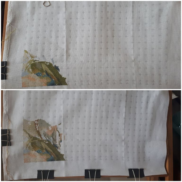 Ничего себе разница двух фото ) Я на первой и не заметила, что внизу есть двор и машины ) Вышивка отлично растет )