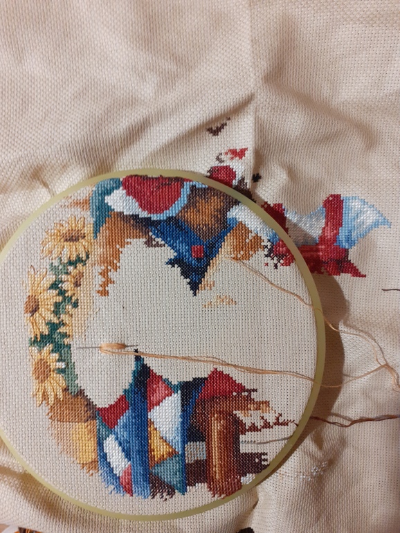 Всем привет) у нас пасмурно,но не дождливо. В субботу ездили в огород, убрали наконец морковь и свеклу, слили воду из труб(думаю огородникам это знакомо)), пожарили шашлыки, эх,жаль не сфоткала, попрощались с огородом до весны... в городе ужасная ковид обстановка, мама моя работает рентген лаборантом, напрямую с больными контактирует, ругаю ее, сиди говорю дома,нет же(( я уж сама боюсь с ней контактировать. А потом подумала-у всех врачей и медперсонала есть семьи, никто не сбегает. Вчера мою учительницу увезли в другой город в тяжелом состоянии, у многих кто-то где-то болеет, короче меня накрывает... Моя вышивка не могу навышиваться никак))) наверно все потому что мне предстоит на неск.дней лечь в больницу, переживаю как же я без вышивки))нууу, возьму туда с собой вязание))) у меня плановая операция по лор части, слава Богу у нас хороший врач,который будет сам оперировать. Сегодня собрала последние бумажки, завтра иду получать койку в больнице,но завтра еще ночую дома, так что будет у меня выходной (ага,ага, уборка,готовка...🤣) в общем✊✊✊ всех люблю!😘🤗