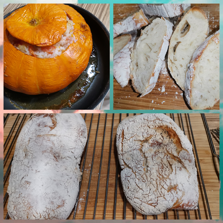 это была рисовая каша с мясом в тыкве. Готовила первый раз не пожалела, было вкусно, жаль время не подрасчитала, понадобилось около 4х часов, чтоб рис полностью сварился) ну и хлеб это чиабатта без замеса. Рецепт долгий по времени, но физических затрат минимум. Кому интересно, это Юлия Смолл, ленивая чиабатта без замеса https://www.youtube.com/watch?v=nsJ5gsWEqwQ