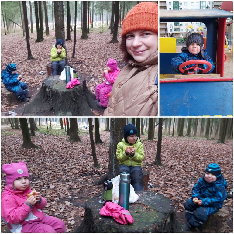 А это мы днем в субботу тоже успели погулять, в лесу, устроили детям небольшой пикник и потом они с удовольствием гуляли на площадке. А то мы уже полтора месяца не ходили на детские площадки в наших дворах и для дети очень по ним соскучились