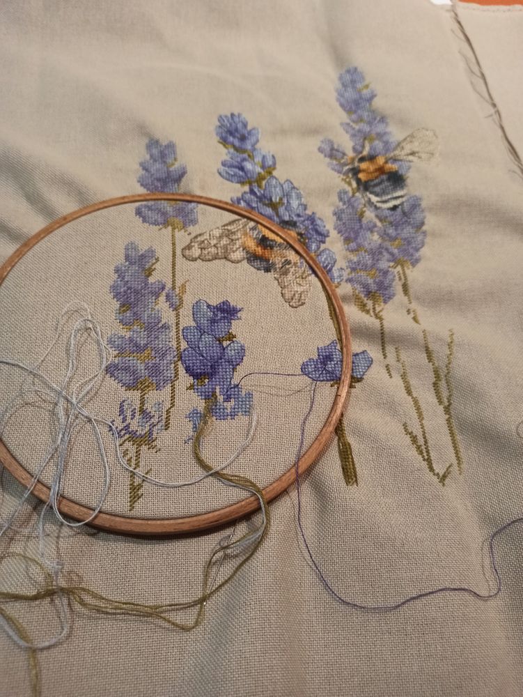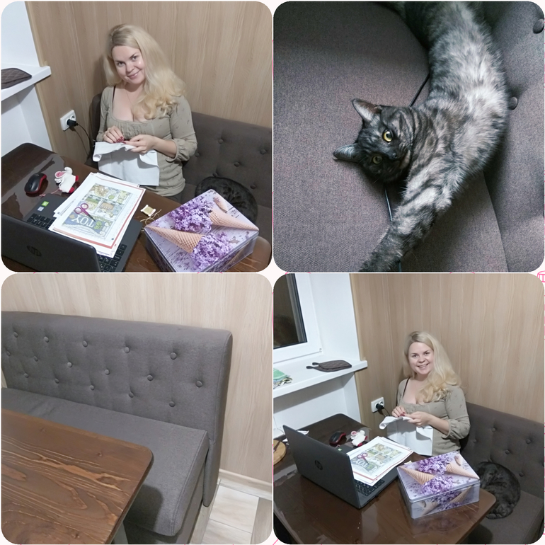 Но продвинулась пока немного. То то, то сё 😶 Но были и приятные моменты 😀 Мы купили диванчик на кухню, теперь там уютно и у меня снова есть удобное место для вышивки 🤗 Его сразу облюбовали ВСЕ 😸