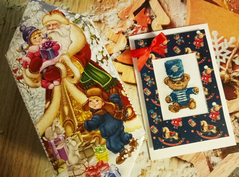 Да, он прямо душу греет 💖💖💖 там ещё мишка и мышка, но мышки я почему-то на открытках не помню 🙄