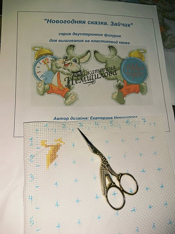 И тут я подумала о том, что мне не с чем будет идти в галерею 🤔 Аа, хотя нет, у меня же 3 баночки есть))) Короче, эта картина будет полгода вышиваться, поэтому я решила взяться ещё за зайчика Немшиловой😀🐇 Он оказался больше, чем я предполагала. Решила всё сделать по-своему, поэтому у меня он будет односторонний