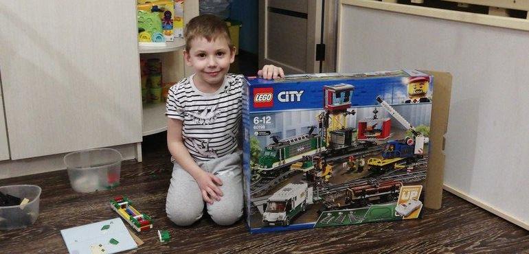Подарили ему от всех бабушек, дедушек и нас большой набор Лего, книгу и термомозаику.